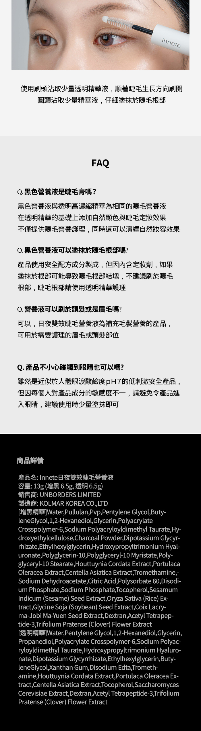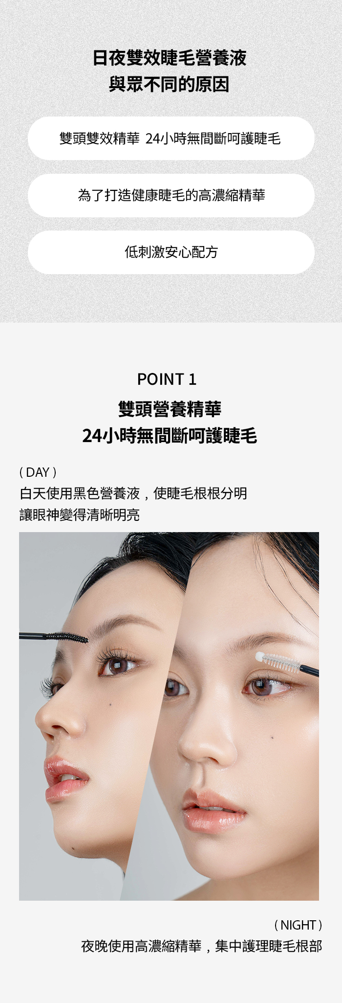 • 採雙頭設計﹐兩種精華24小時呵護睫毛